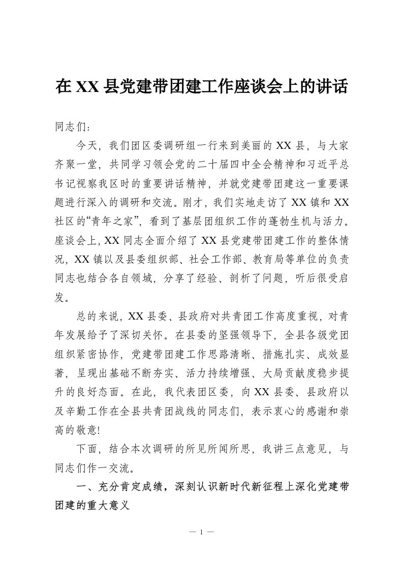 首页工作文档在XX县党建带团建工作座谈会上的讲话