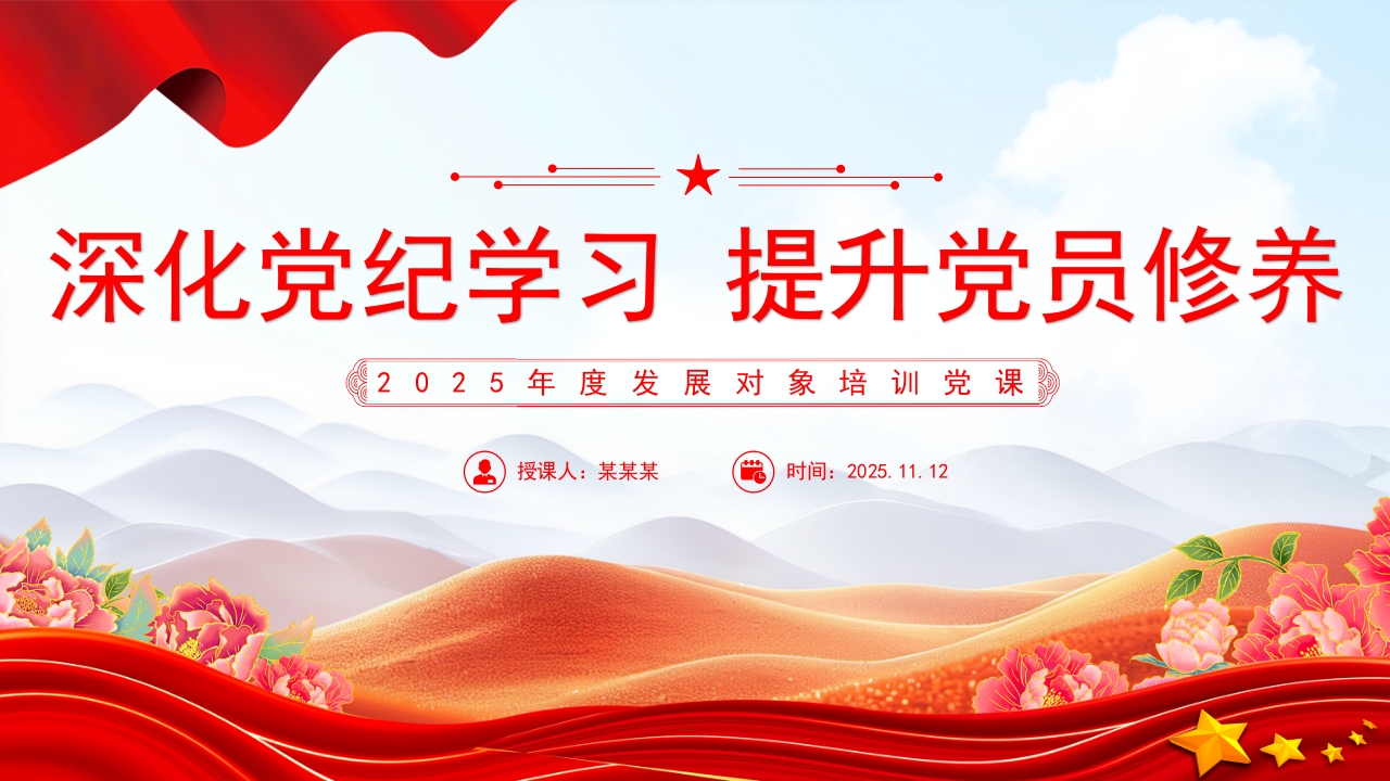 首页PPT模板红色精美深化党纪学习提升党员修养PPT2025年度发展对象培训党课