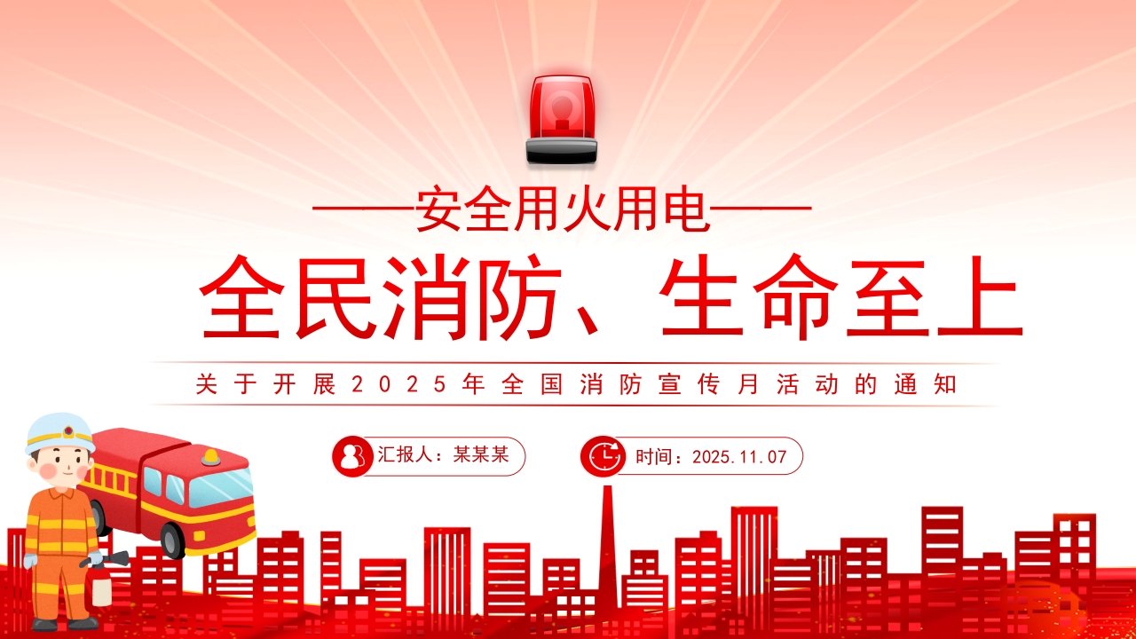 首页PPT模板2025年全国消防宣传月PPT全民消防生命至上安全用火用电课件下载