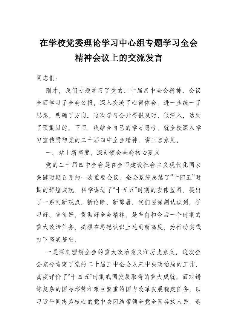 在学校党委理论学习中心组专题学习***精神会议上的交流发言