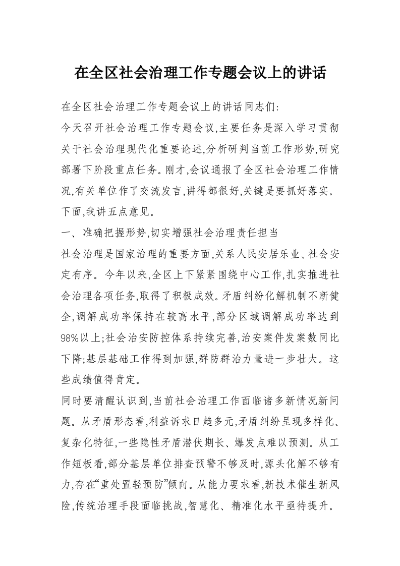 首页精选范文在全区社会治理工作专题会议上的讲话