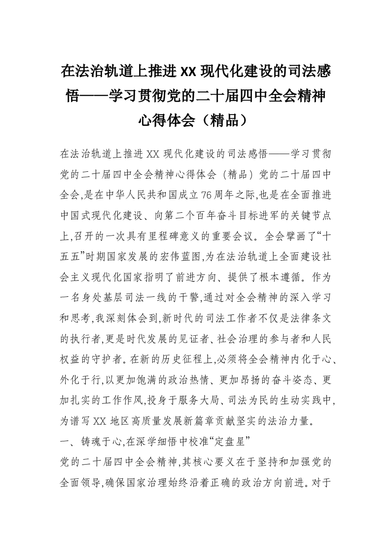 在法治轨道上推进XX现代化建设的司法感悟——学习贯彻党的二十届四中***精神心得体会(精品)