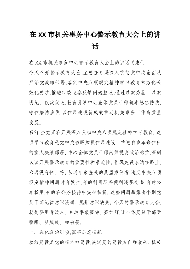 首页精选范文在XX市机关事务中心警示教育大会上的讲话