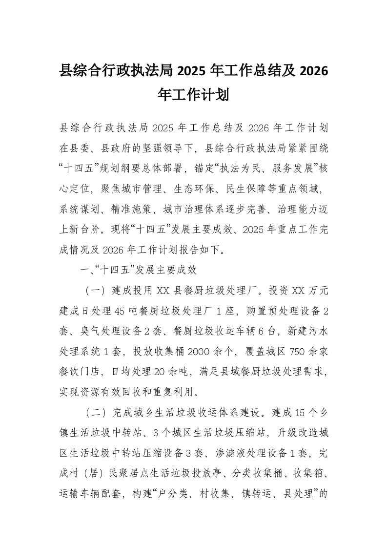 首页精选范文县综合行政执法局2025年工作总结及2026年工作计划