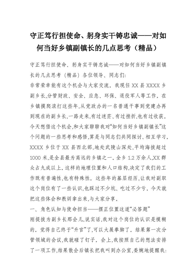 首页精选范文守正笃行担使命、躬身实干铸忠诚——对如何当好乡镇副镇长的几点思考(精品)
