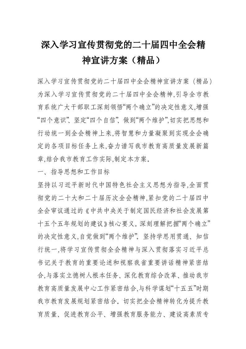 深入学习宣传贯彻党的二十届四中***精神宣讲方案(精品)