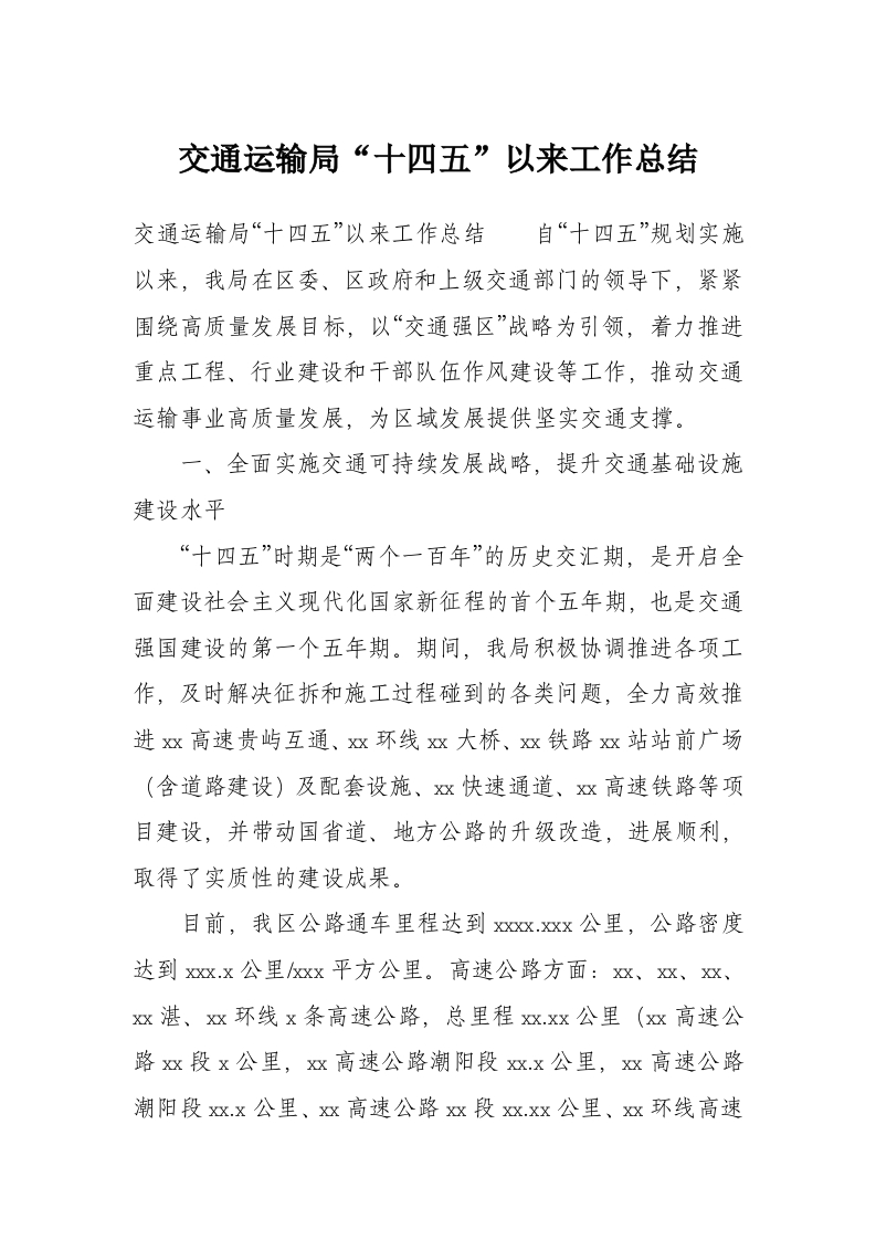 交通运输局“十四五”以来工作总结
