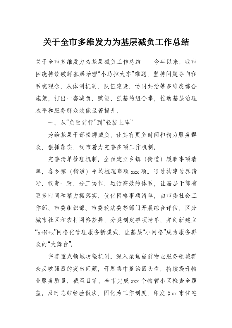 首页材料汇编关于全市多维发力为基层减负工作总结