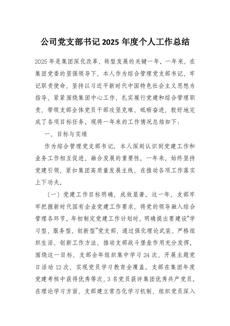 首页材料汇编公司党支部书记2025年度个人工作总结
