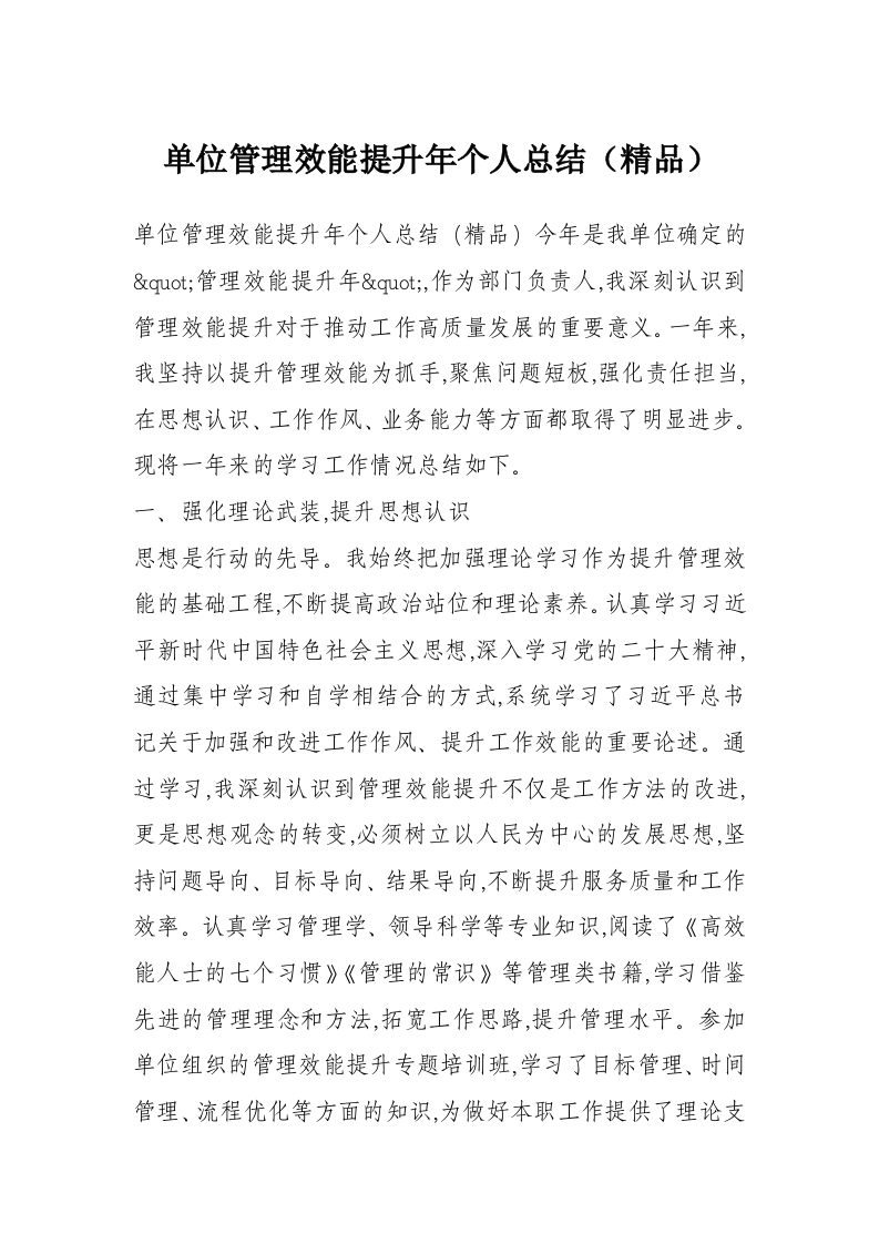 首页材料汇编单位管理效能提升年个人总结(精品)