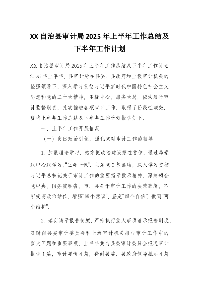 XX自治县审计局2025年上半年工作总结及下半年工作计划