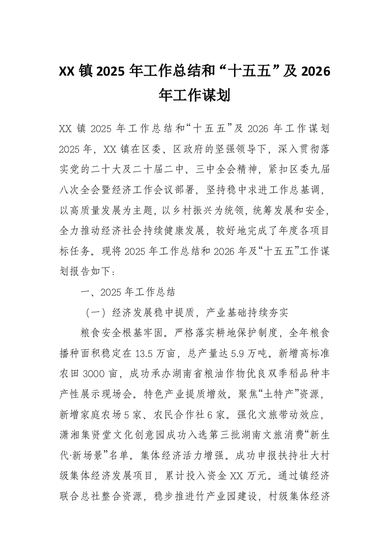 XX镇2025年工作总结和“十五五”及2026年工作谋划