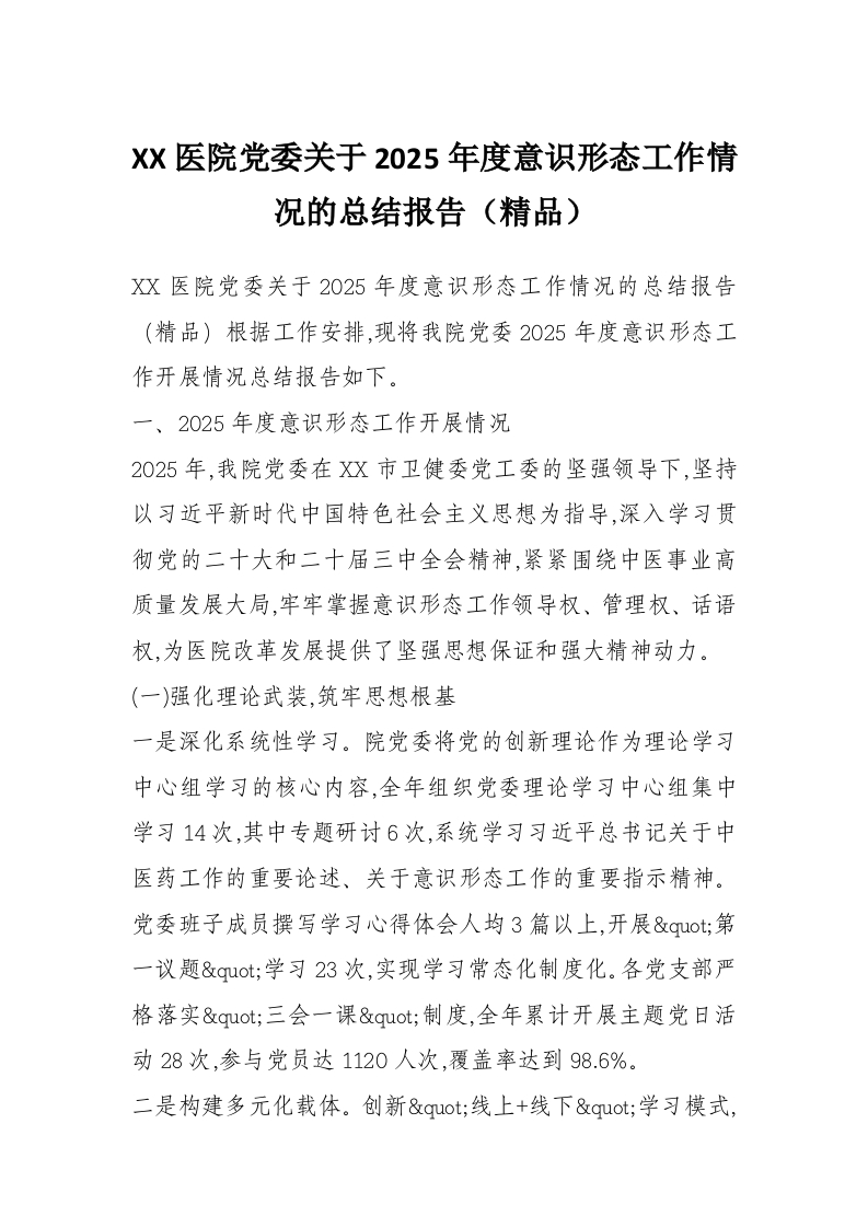 XX医院党委关于2025年度意识形态工作情况的总结报告(精品)