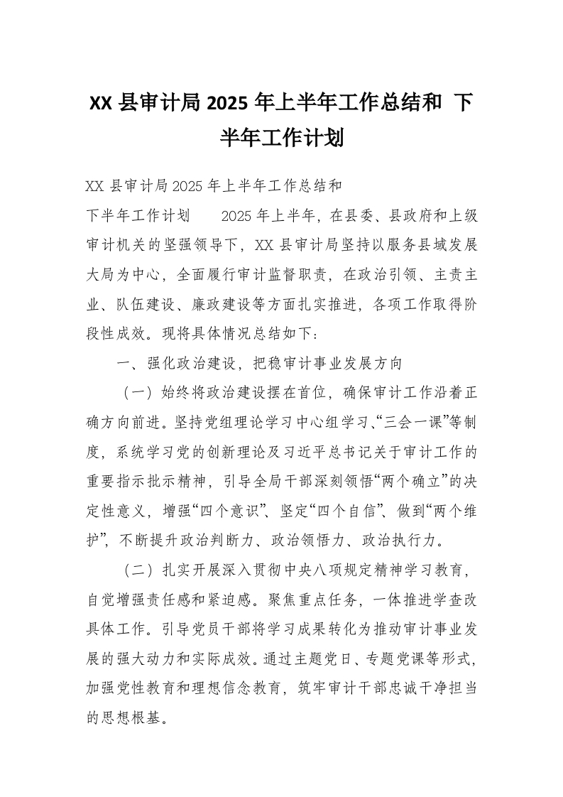 XX县审计局2025年上半年工作总结和 下半年工作计划