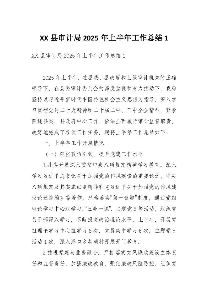 XX县审计局2025年上半年工作总结1