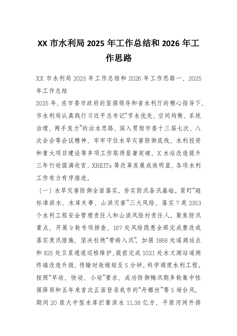 首页学习提升XX市水利局2025年工作总结和2026年工作思路