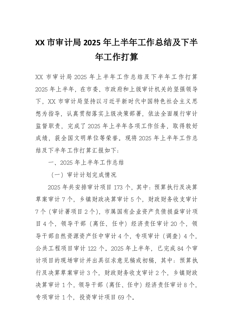 XX市审计局2025年上半年工作总结及下半年工作打算