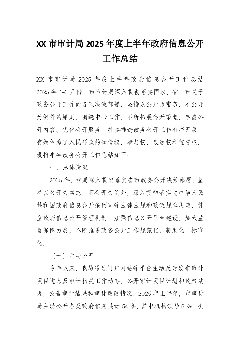 首页学习提升XX市审计局2025年度上半年***信息公开工作总结