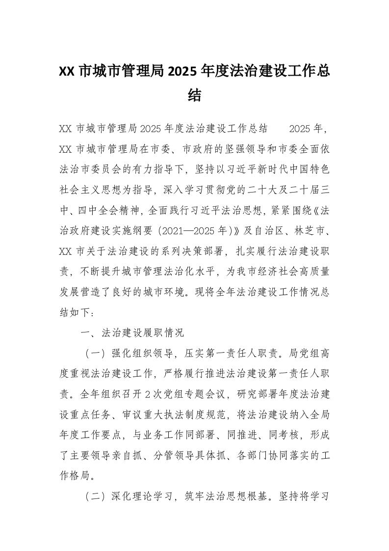 XX市城市管理局2025年度法治建设工作总结