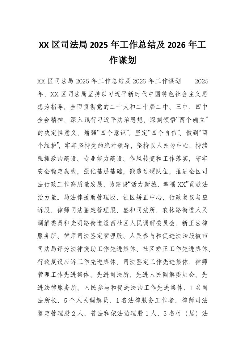 首页学习提升XX区司法局2025年工作总结及2026年工作谋划
