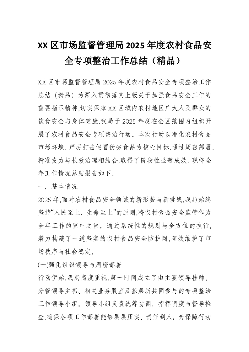 首页学习提升XX区市场监督管理局2025年度农村食品安全专项整治工作总结(精品)