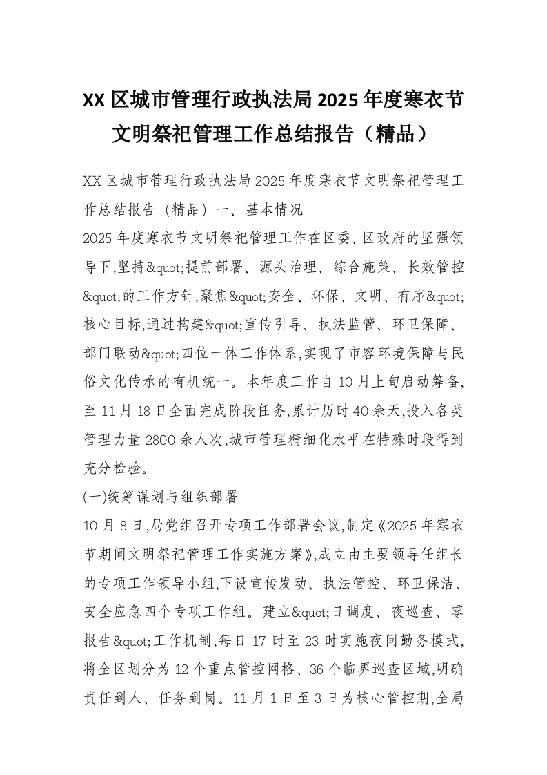 XX区城市管理行政执法局2025年度寒衣节文明祭祀管理工作总结报告(精品)