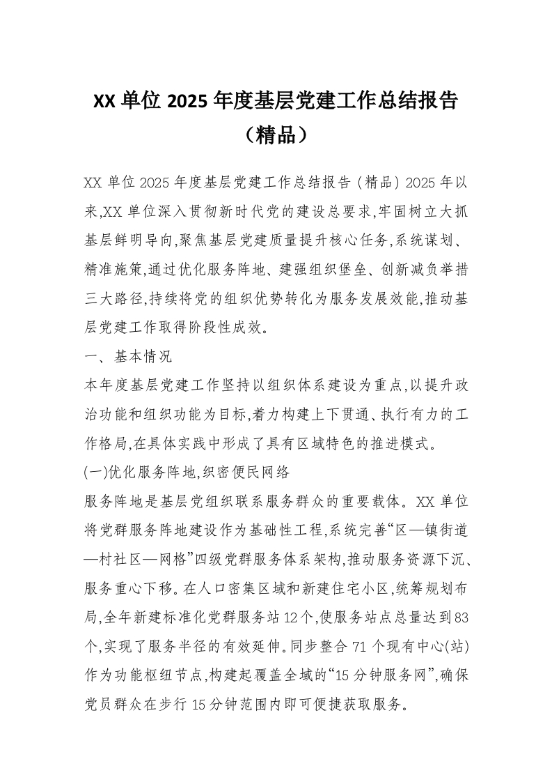 首页学习提升XX单位2025年度基层党建工作总结报告(精品)