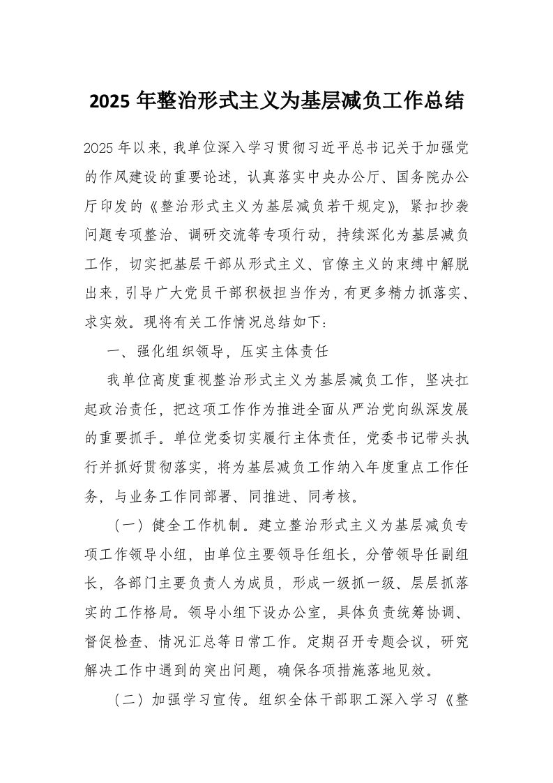 首页学习提升2025年整治形式主义为基层减负工作总结