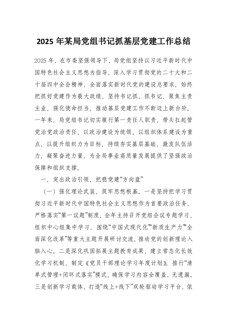首页工作文档2025年某局党组书记抓基层党建工作总结