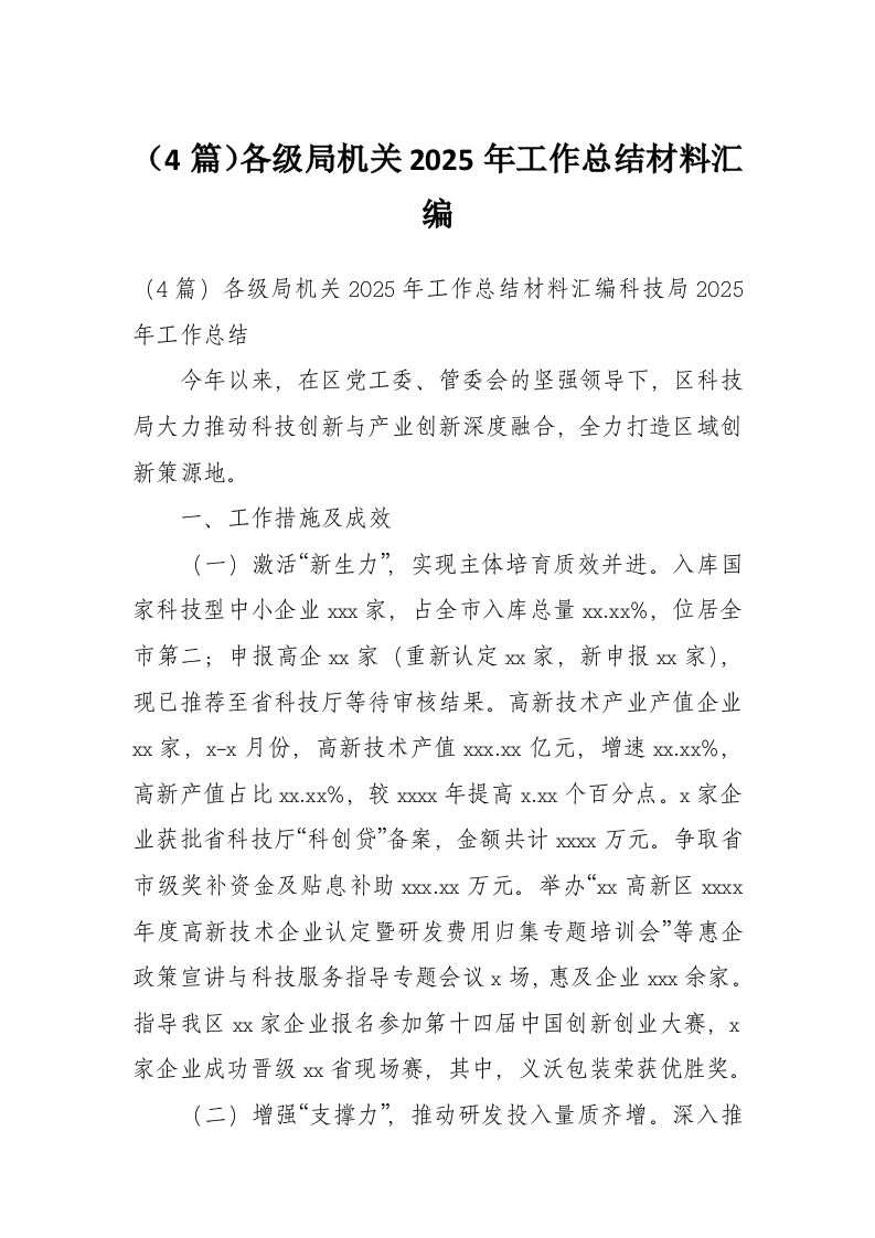 首页工作文档(4篇)各级局机关2025年工作总结材料汇编