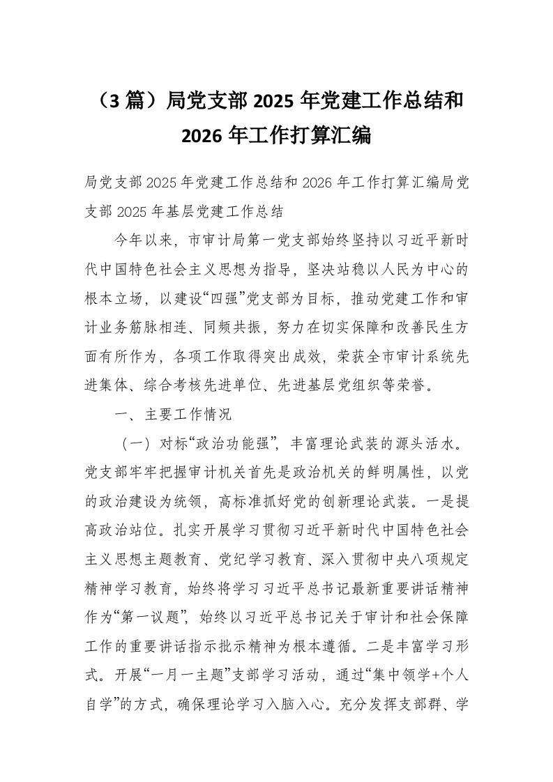 (3篇)局党支部2025年党建工作总结和2026年工作打算汇编