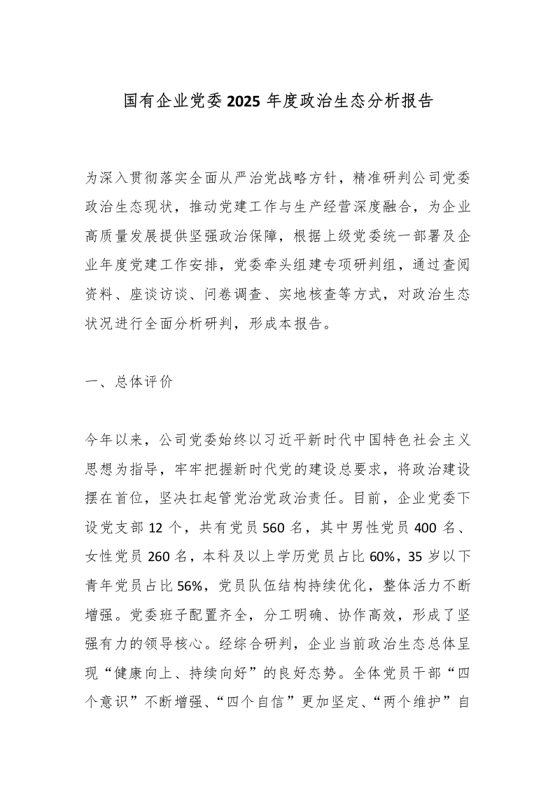 首页工作文档国有企业党委2025年度政治生态分析报告_副本