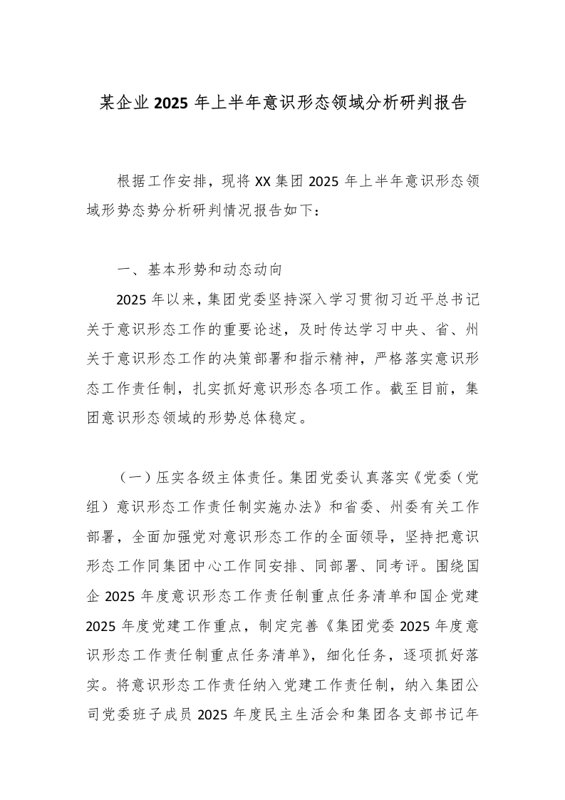 某企业2025年上半年意识形态领域分析研判报告_副本