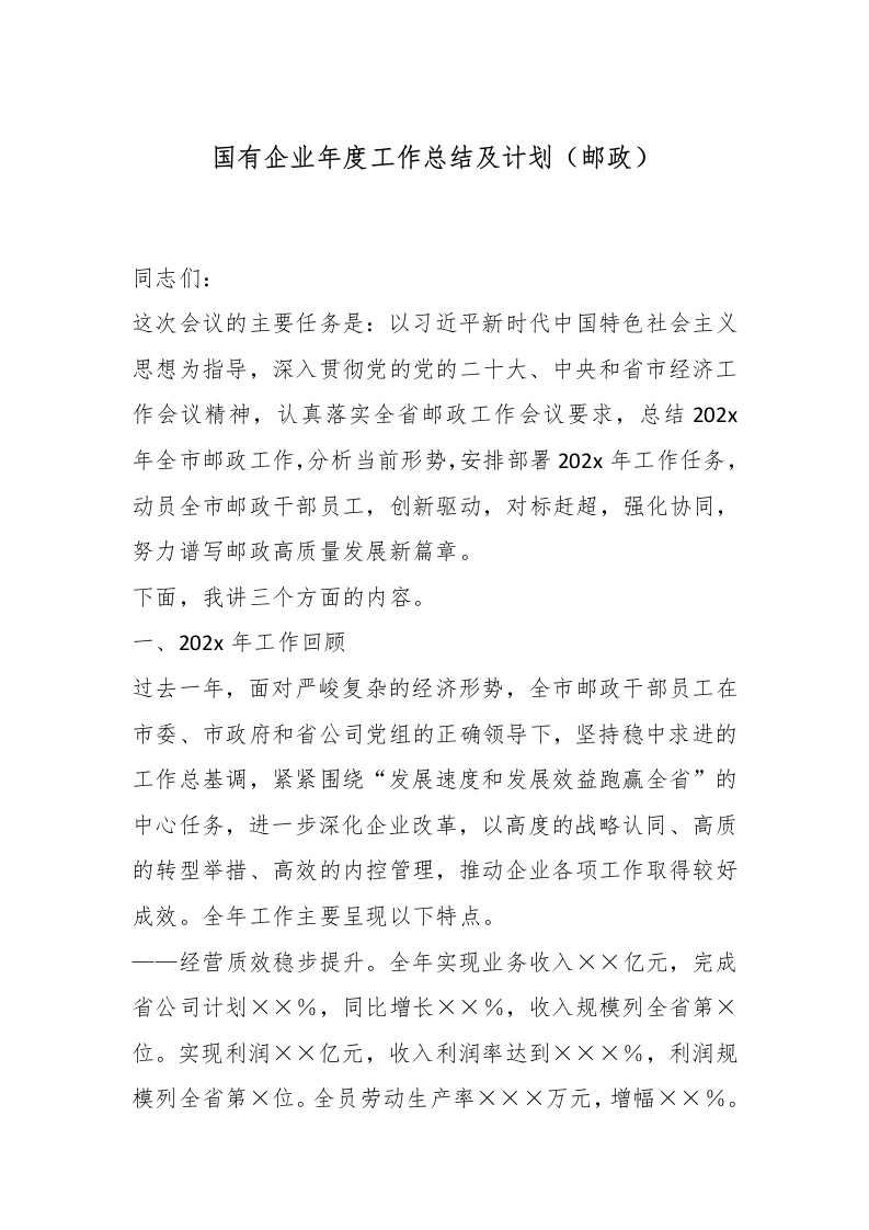 首页工作文档国有企业年度工作总结及计划(邮政)_副本
