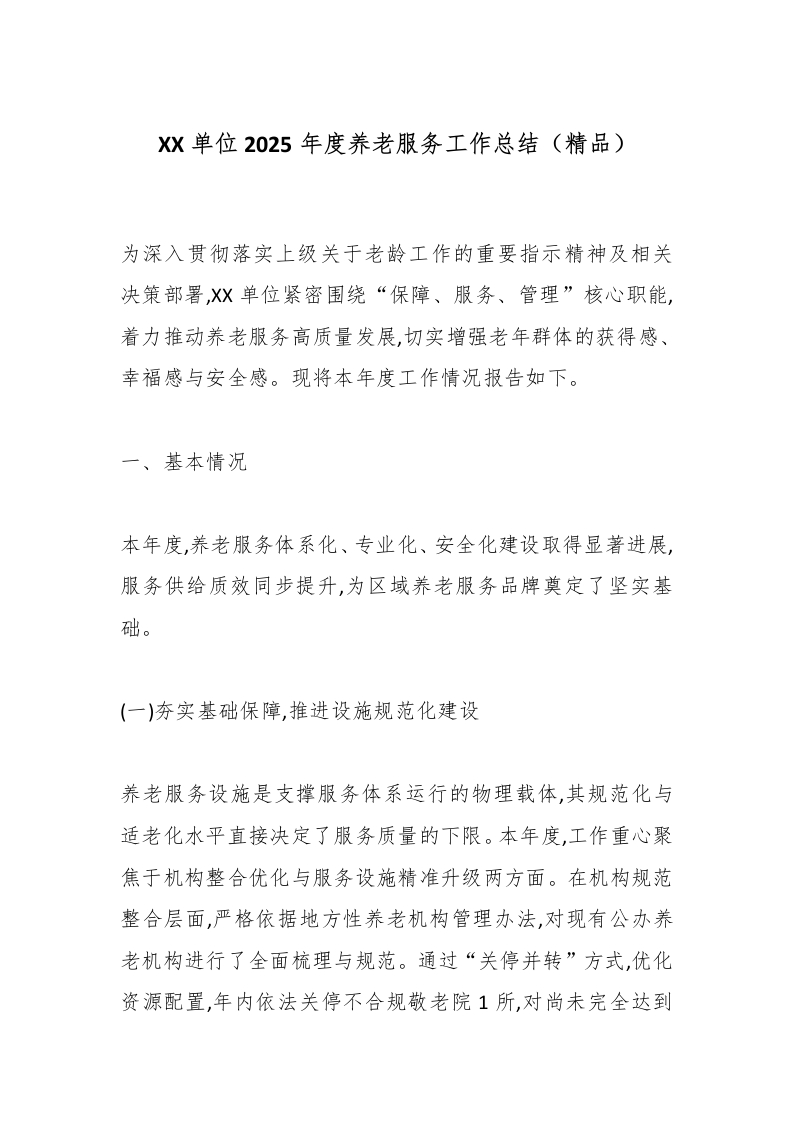首页工作文档XX单位2025年度养老服务工作总结(精品)_副本