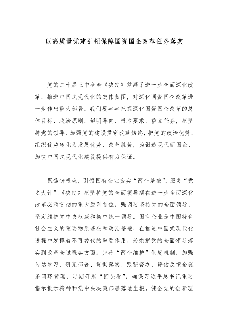 首页工作文档以高质量党建引领保障国资国企改革任务落实_副本