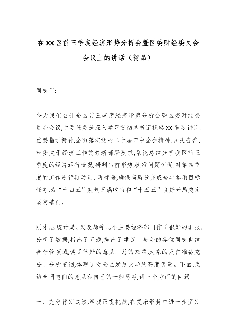 在XX区前三季度经济形势分析会暨区委财经委员会会议上的讲话(精品)_副本