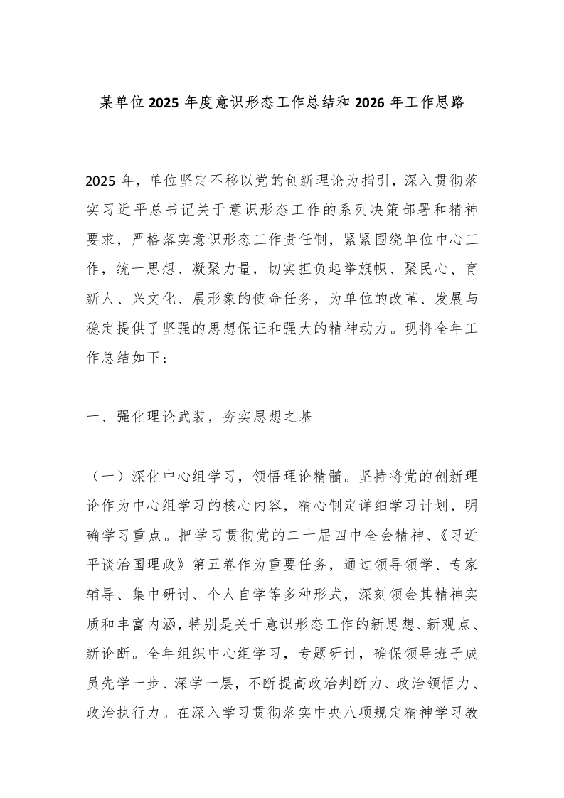 某单位2025年度意识形态工作总结和2026年工作思路_副本