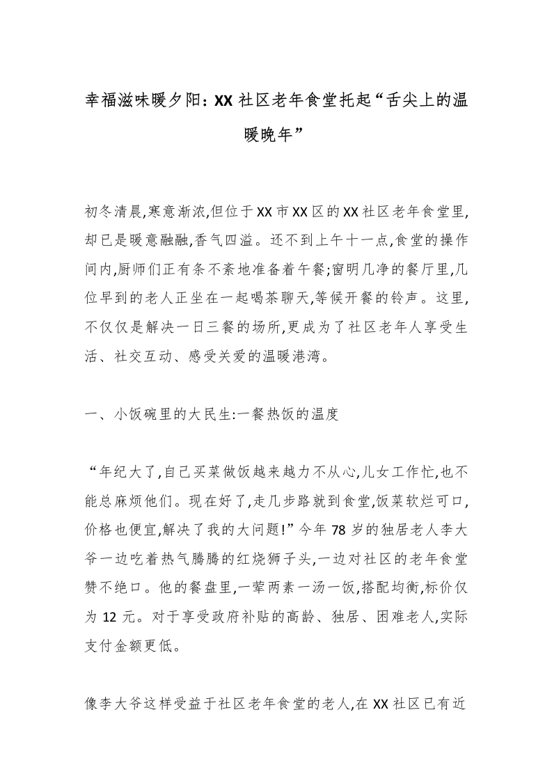 首页工作文档幸福滋味暖夕阳:XX社区老年食堂托起“舌尖上的温暖晚年”_副本