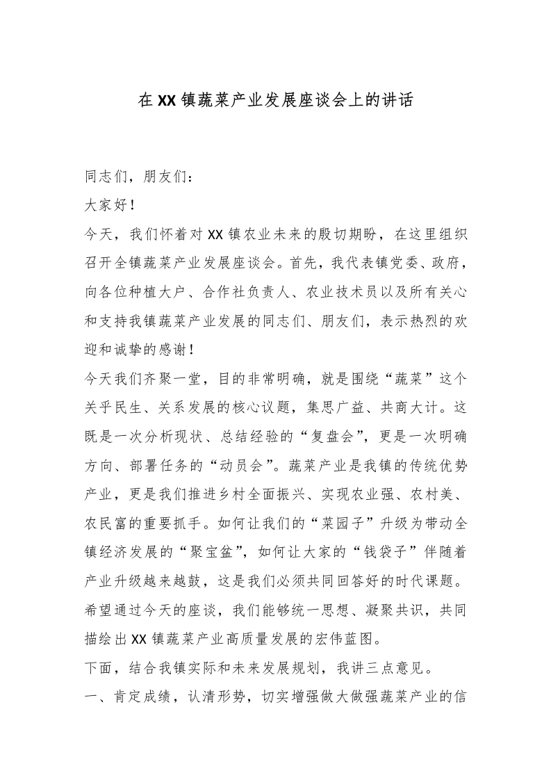 在XX镇蔬菜产业发展座谈会上的讲话_副本