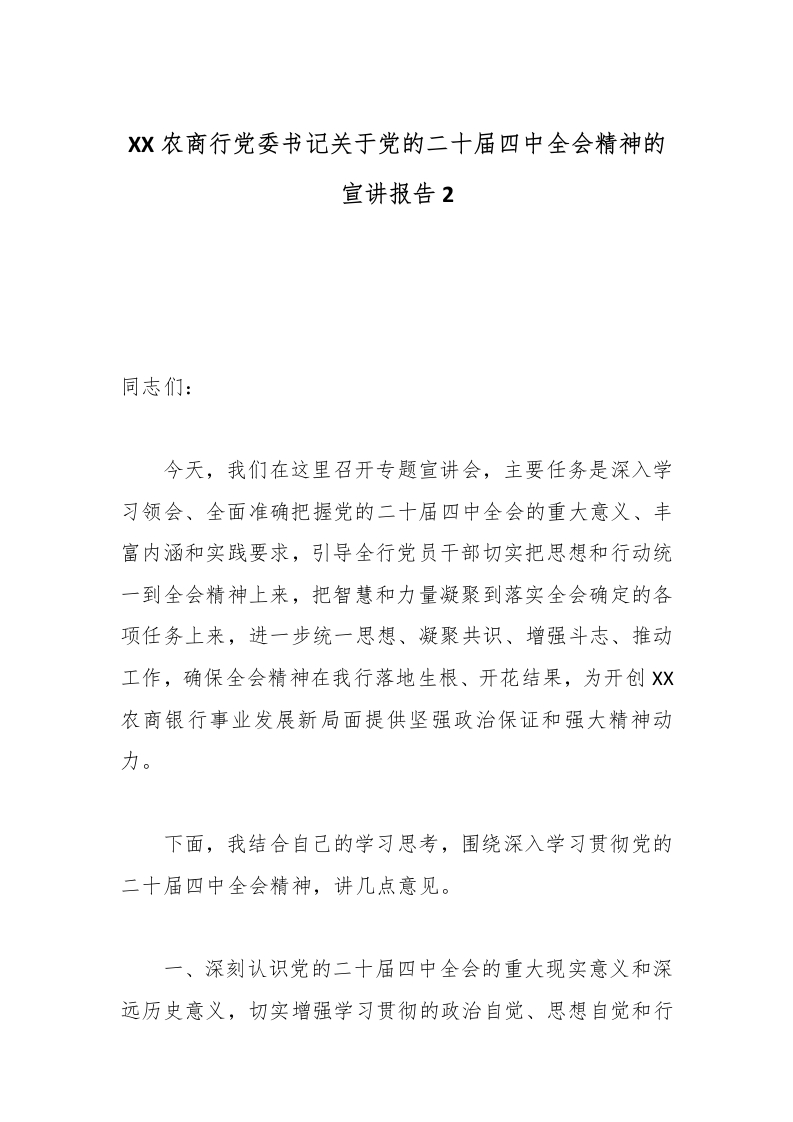 首页工作文档XX农商行党委书记关于党的二十届四中***精神的宣讲报告2_副本