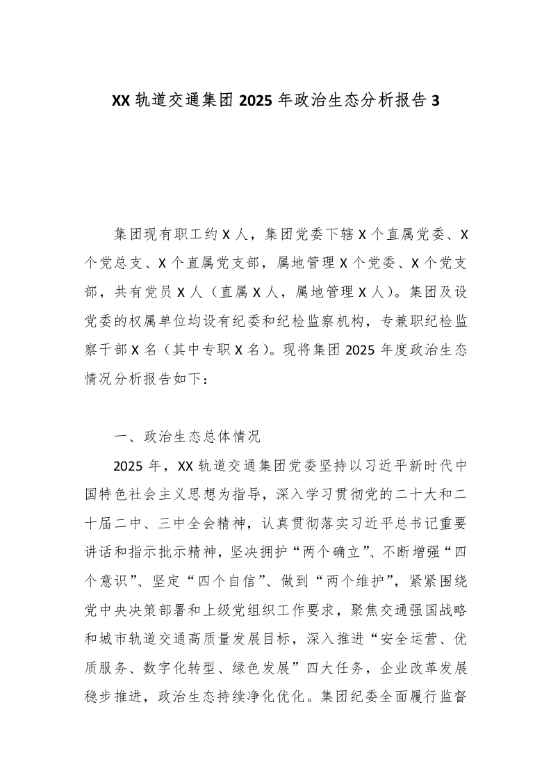 XX轨道交通集团2025年政治生态分析报告3_副本