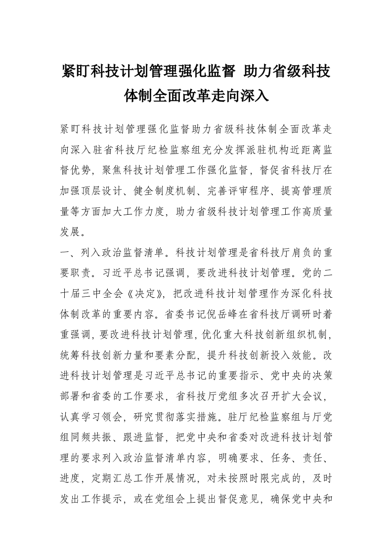 紧盯科技计划管理强化监督 助力省级科技体制全面改革走向深入