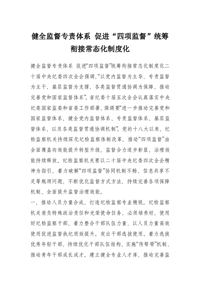 首页材料汇编健全监督专责体系 促进“四项监督”统筹衔接常态化制度化