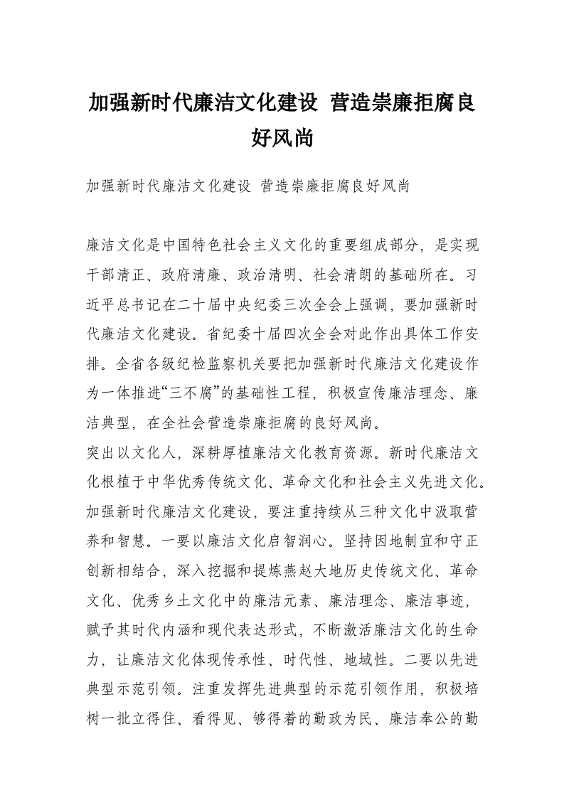 首页材料汇编加强新时代廉洁文化建设 营造崇廉拒腐良好风尚