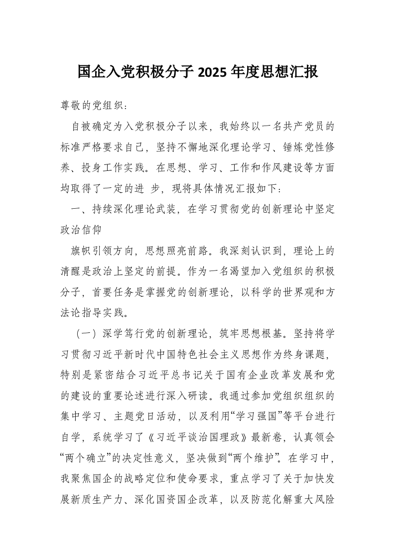 国企入党积极分子2025年度思想汇报