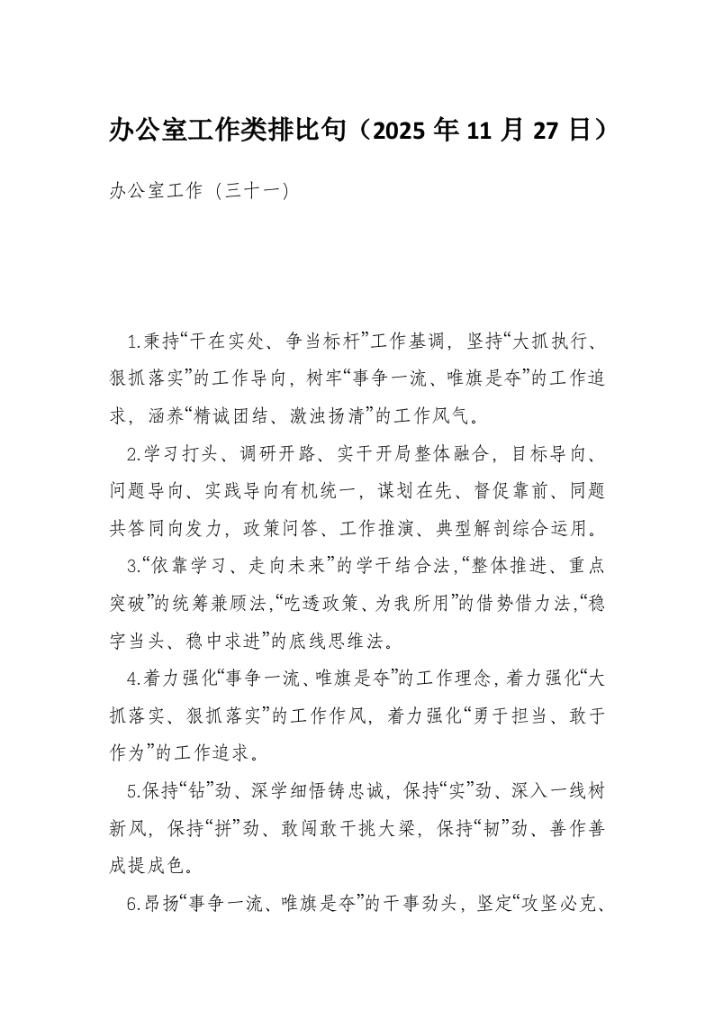 首页每日金句办公室工作类排比句(2025年11月27日)
