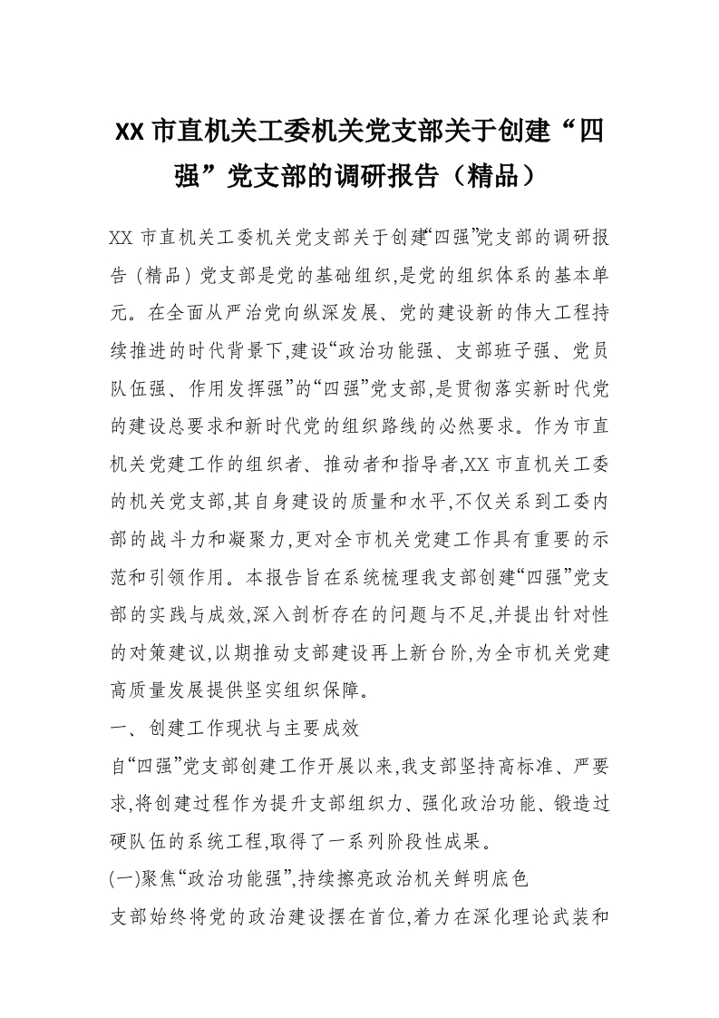 首页材料汇编XX市直机关工委机关党支部关于创建“四强”党支部的调研报告(精品)