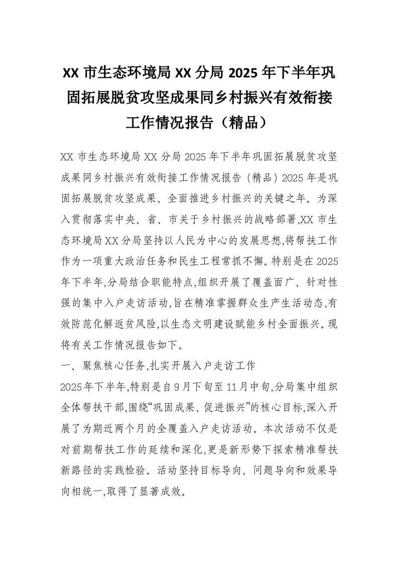 XX市生态环境局XX分局2025年下半年巩固拓展脱贫攻坚成果同乡村振兴有效衔接工作情况报告(精品)