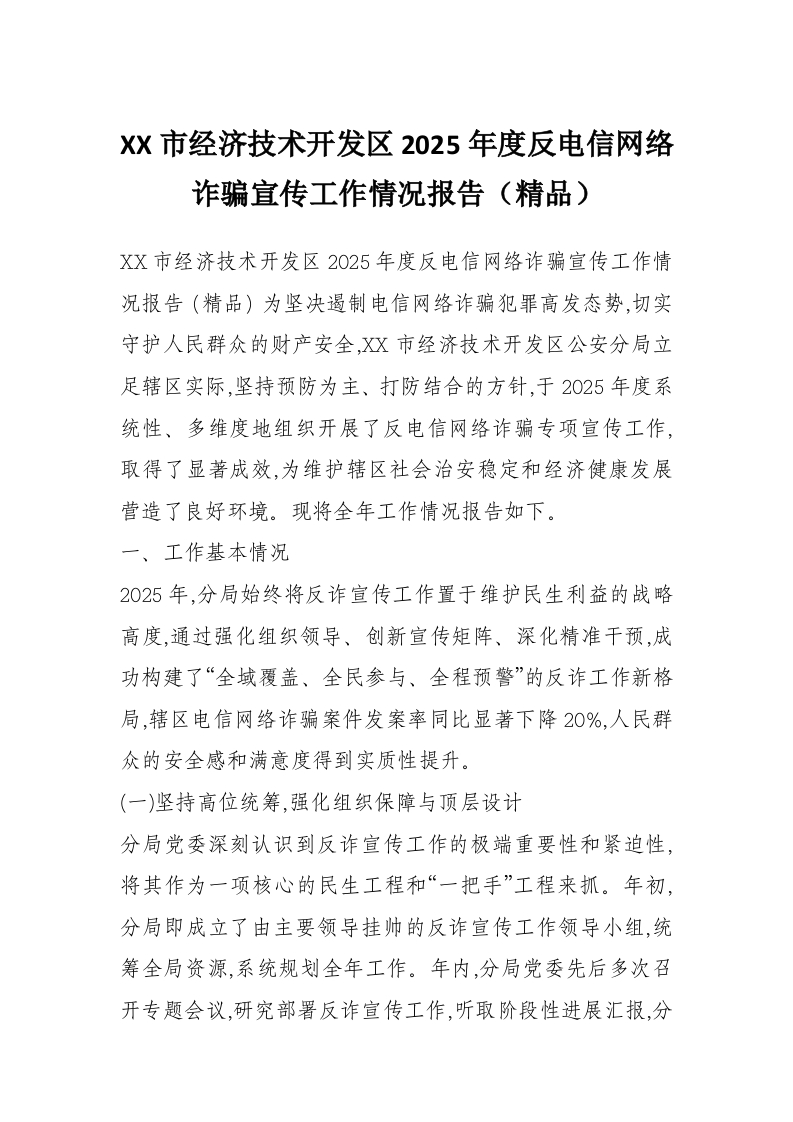XX市经济技术开发区2025年度反电信网络诈骗宣传工作情况报告(精品)